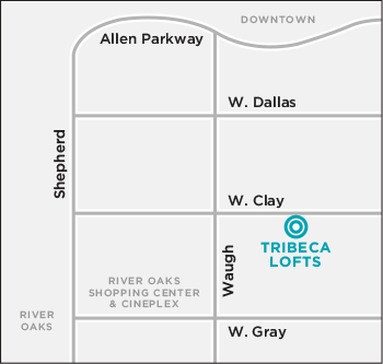 Tribeca Lofts is located in the prestigious River Oaks zip code of 77019 in the geographic center of Houston. River Oaks is north of the Houston district of Upper Kirby, Montrose, east of Memorial, south of Memorial Park and minutes from Downtown Houston.